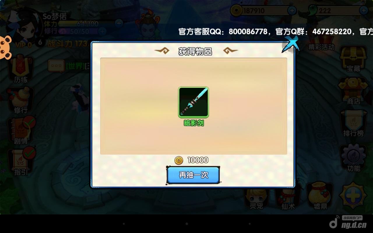 宝藏:说明白点,就是抽奖功能,但这个设置不知道是官方故意的还是没想到,相信大家在抽奖结束后,都习惯的先点道具下面直接关闭窗口(一般游戏设置道具下面显示的是“完成”)可这里并不是!而是直接显示“再抽一次”,并且一点还没有任何确认提示,直接开抽。不知道大家有没有手贱,反正小偌已经手贱好多次了!