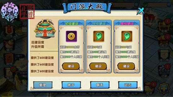 人和是门派发展中最重要的一个因素。小编所理解的人和就是人与人之间的团结和睦,门派需要广大弟子成员齐心协力一起建设才能发展得更好。“门派建设度”是门派升级发展的关键,建设度达到一定要求的门派才能升级。作为门派掌门,一个人的力量是有限的,要号召广大门派弟子一起建设门派,这样门派建设度才能更快的增长,门派才能取得更好的发展。门派等级越高,排名越高,名气越高,门派的发展就将越发无可限量!