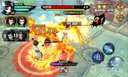 4、让角色到杀姐姐背后,和宠物形成两面夹击,超强的爆发一套带走。打持久战的话那个凤凰转圈圈是固定区域的,这个技能是主要杀伤技能,可以骗这个技能去外圈放。