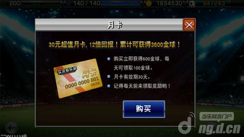 活动介绍:每月只需花30元购买月卡,天天登录就能获得3600个金球!购买当天即送600金球,以后每天登陆再送100金球!
