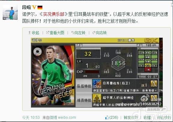 而作为全球超人气足球手游的《实况俱乐部》,在上市之后的一贯宣传策略便是与诸多足球界大佬展开合作:邀请足球名嘴王涛为游戏配音;李金羽、郜林等国足纷纷发表微博力挺《实况俱乐部》……