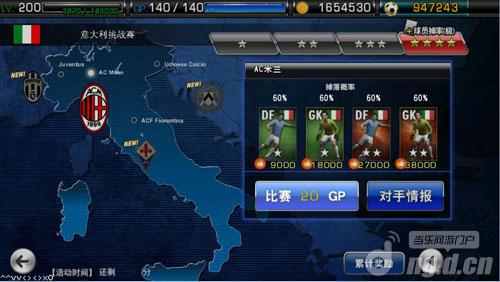 活动介绍:不定期开启五大联赛(意大利联赛、西班牙联赛、法国联赛、荷兰联赛、苏格兰联赛)之一,挑战各联赛最强的俱乐部!成为亚平宁半岛、斗牛国、法兰西、低地之国、北大不列颠最强的球队!挑战各个俱乐部有机会获得两种珍贵的卡牌:A、“+1”球员:作为训练的材料卡牌,能永久提升被训练卡牌的对应属性,最多可以提高该属性99点。一个球员可以获得最高594点属性的永久加成!由于每个联赛都有各自的特点,所以不同联赛产出的“+1”球员会更倾向各自联赛的特点。首期我们推出的意大利联赛重视防守,钢筋混凝土防线闻名世界足坛,所以会更容易产生加防守属性的“+1”球员。B、“即战力”球员:等级大于1级的卡牌,作为训练的材料卡牌,能提供更多经验,可快速提升被训练卡牌的等级!