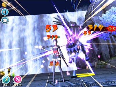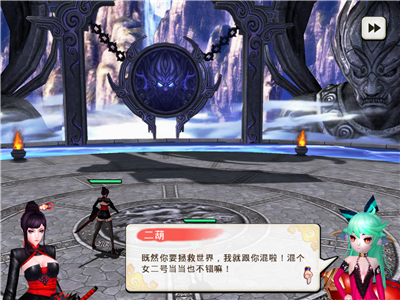 还没有从加载的小游戏中回过神,就看到了熟悉的人物,听到了熟悉的配音,直到选择人物的界面的出现才知道自己并不是在看动漫,而是在玩游戏。过场动画的制作想当精致,无论从特效、细节,还是从剧情的设计都能感受到游戏开发方的用心(广告即视感:P ),并且在动画中引入了时下热门的弹幕式设计,对于一个专注吐槽十年的积极分子,一种亲切感油然而生。