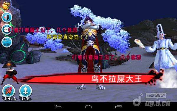 这个BOSS会变身,在一堆小怪的拥护之下显得拽拽的。带着小黑小白,还真以为自己是阎王爷了?由于鸟不拉屎大王变身之后会很变态,高伤害高爆发高防御,所以我们要在前期积攒一波大招,留到鸟不拉屎大王半血变身之后一波带走他(这属于理想状态)。打死鸟不拉屎大王之后,我们要先打会加血的小白,用群体技能砸小怪,单体技能收割残血。理想状态会拿到鸟不拉屎大王副本的三星评价。当然,如果你的伤害和阵容确实搭配不合理(T和奶都要给力点)那么还是要扑街的哟。