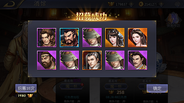 酒馆招募是《古龙群侠传之浪子归来》中,重要的侠客来源,在酒馆招募中,有几率获取宗师级或传说级侠客,赶快组建好你的侠客小队,一起闯荡古龙江湖吧!