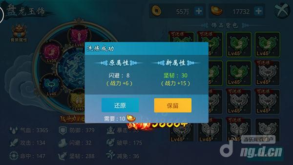 盘龙玉饰刚出来那会,还没有任何提醒的,战力的提升或者下降,需要装备上去才知道的,成功了铜币花出去,失败了还要用元宝还原回来,虽然有点坑,但是还是觉得蛮好玩的,毕竟未知数好大,洗练出来什么鬼都不知道哈。成功了,战斗力一下子拔高一百多点也是蛮高兴的。包包里攥着一堆慢慢试。