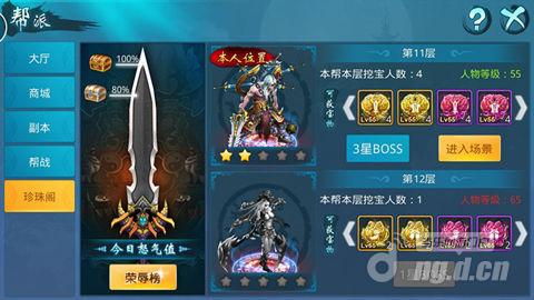 2、帮派成员每成功掠夺他人一次,帮派增加一点怒气值,当日总怒气达到80%和100%时,所有帮派成员在采集时能够额外获得一定数量的宝箱