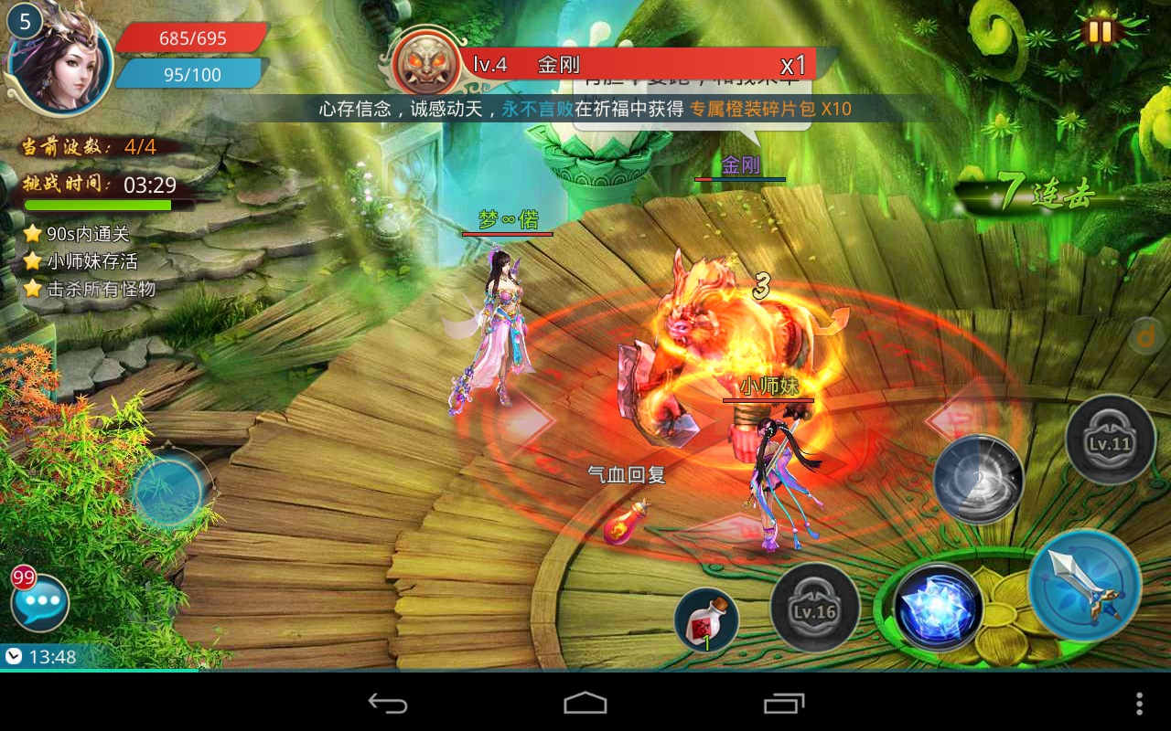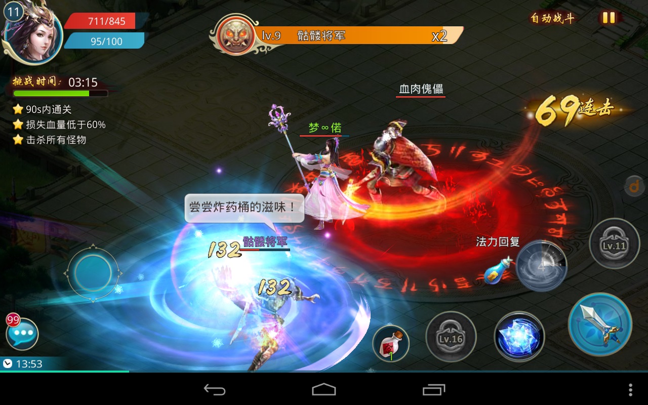 5、技能:仙侠游戏除了古风的画质感外,还需要气势磅礴的技能,技能画面越绚丽,给人感觉越NB有木有?对于LZ这种画面党来说,一个好看的技能取决于角色的NB度,所以这款游戏的技能效果还是灰常不错滴,每个角色有8个技能,有图有真相,各位看官,你们懂得。