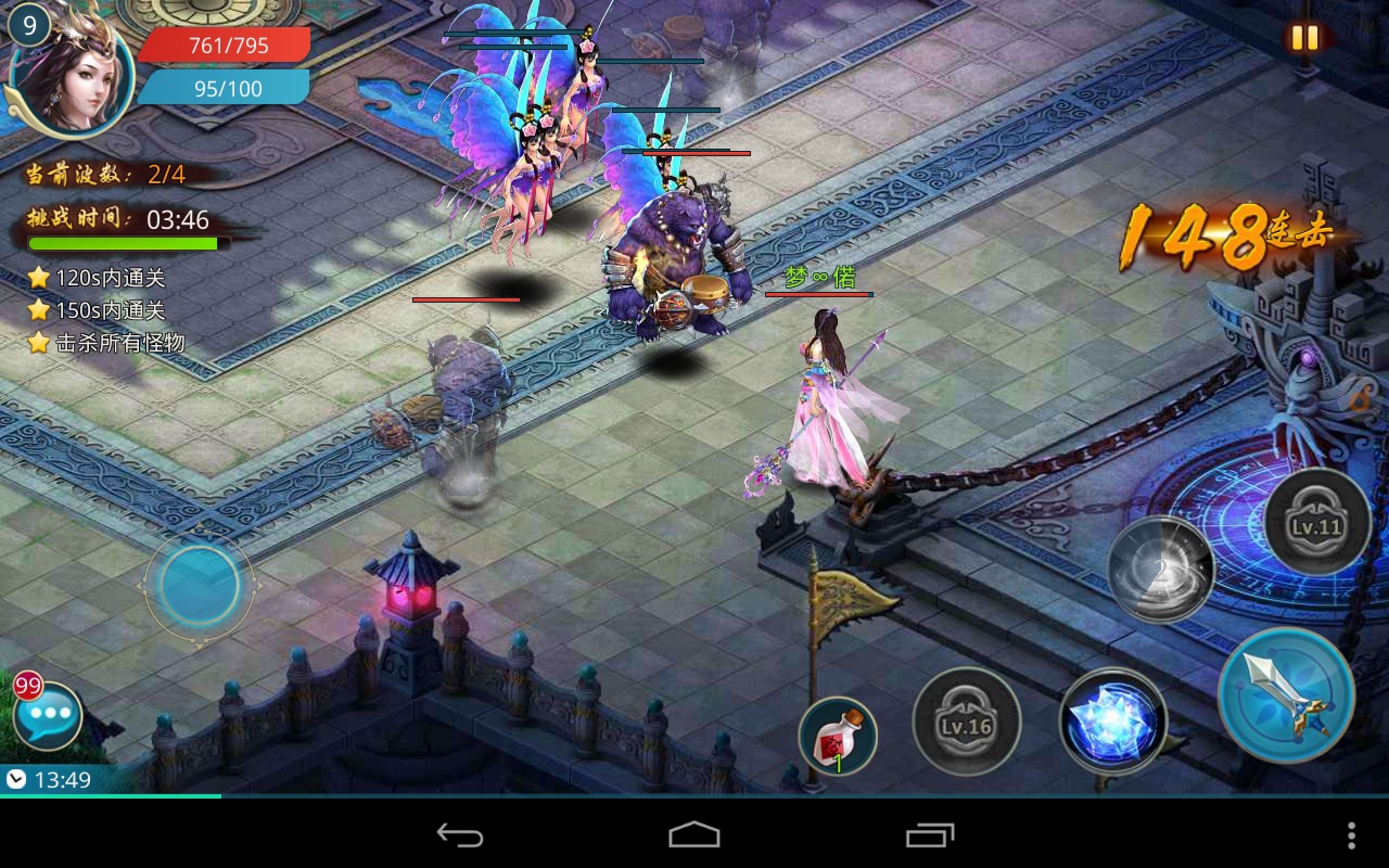 4、特色:以战斗为核心,全方位无锁定攻击,LZ玩过太多的锁定制游戏,自从玩过无锁定的游戏就喜欢上了自由PK的感觉,自由攻击前提需要游戏不能卡顿延迟,否则不是用苦逼就能形容的,所以还是WIFI状态下玩会好很多。
