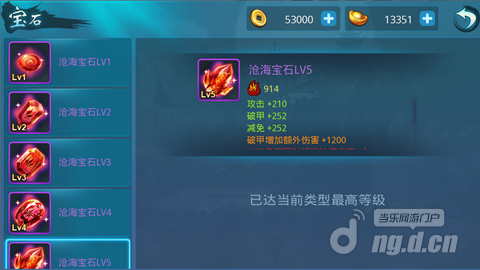 沧海宝石是一种独特的宝石,共5个等级,沧海宝石主要属性是攻击、破甲、减免,并会增加额外的破甲伤害,每个沧海宝石在每个装备上只能镶嵌一个