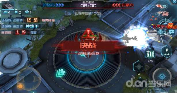 拾取导弹之后,你需要把这些导弹上缴到地图中央的中立导弹发射车那里——这可不是个容易的活儿,因为对手的五双眼睛正死死地盯在你的身上,打算把你干掉,再抢走你身上的导弹呢!给你的忠告是:最好喊上你的队友,为你做好掩护。