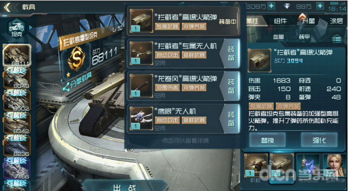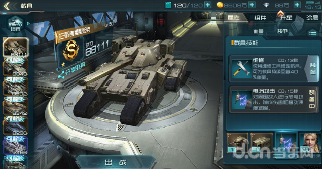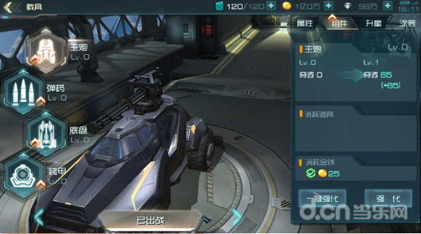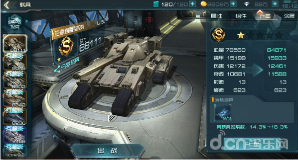 每个载具拥有主炮、弹药、底盘、装甲四个组件,可使用在剧情关卡等玩法中获得的组件材料对其进行强化,来进一步提升载具每个组件的能力。