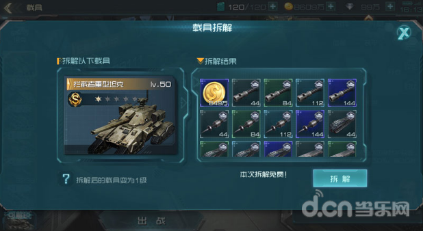 当指挥官有不需要的载具时,可以使用“拆解”功能将该载具变更为1级,同时回收用于强化此载具的大部分材料及金钱。