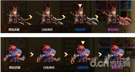 上战场没有一件称手的兵器怎么行!游戏中每个武将都有属于自己的神兵,神兵不仅拥有酷炫的外形,更是能大幅提升武将的战力。
