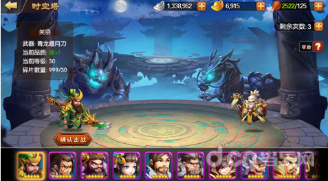 进入时空塔后,首先需要选择一名武将作为试炼武将,这名武将在战斗中是不能阵亡的噢,挑战胜利后即可获得该武将的神兵碎片。