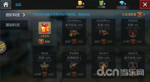 《钢铁雄狮》公会战是全新独立于军团之外的新社交系统,玩家可自由创建公会或选择加入其强者创建的公会!公会系统的核心分为公会战和公会科技,玩家通过参加公会战或其他副本获取公会活跃度。公会活跃度累积一定数量可点亮公会科技中的公会礼包和奖励buff,这些buff可大百分比增加如战役金币收益、世界BOSS金币收益等。公会玩法考究公会玩家的凝聚力,团结一起,活跃度越高则奖励越丰盛!