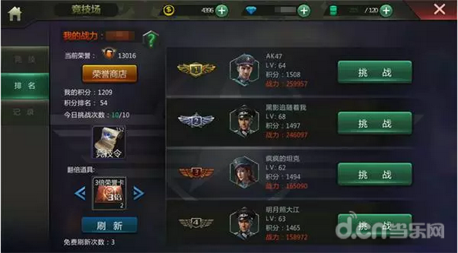 在竞技场中,你可以挑战其他玩家,每日刷新10次挑战机会,也可以使用竞技令来增加挑战次数。