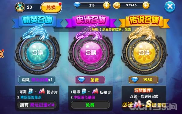 虽然已经是以人物培养为主,但《冒险王2》这款游戏依旧存在很多创新点,除了传统的打造、熔炼、强化、升级装备外,游戏中玩家还可以通过类似于卡牌抽卡的方式获得属于自己的精灵,然而一只好的精灵对于玩家来说可是非常重要的,因为它不仅可以帮助玩家一同向敌人发起攻击,而且在玩家被攻击时还会舍身的去分摊伤害从而帮助玩家更好的生存。