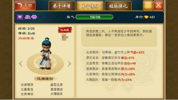 兄弟情深:三兄弟上阵气血+32%,段誉本身气血不高,这个缘分一下把段誉变成小肉盾,大家不要小看32%,后期可是几百点的哦!