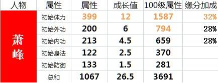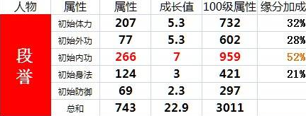 下面我们先来看看天龙三兄弟的缘分图和人物属性资料:(属性成长值四舍五入)
