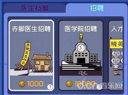 前期的招聘使用1000金币招聘即可,10000万金币的招聘就算出现好的医生多半也是招聘不起的。