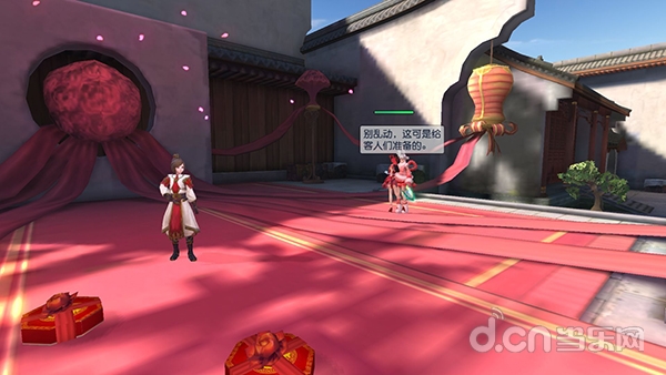 在江南木渎镇广场繁花缤纷的簇拥下,情缘仙姬在此静候每一对佳偶。满足了结婚条件的双方玩家,可一起组队前往景色最为秀丽的江南水乡,在情缘仙姬的见证下许下三生的诺言。作为婚礼的第一环节,玩家需要在多个被蓄意替换的错误名字中找到命中注定人的名字。看似简单的动作,可多少少女也曾在梦中反复排练过,自己的名字从即将陪伴自己一身的情人口中说出,这是最让人动人的情节。