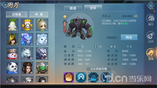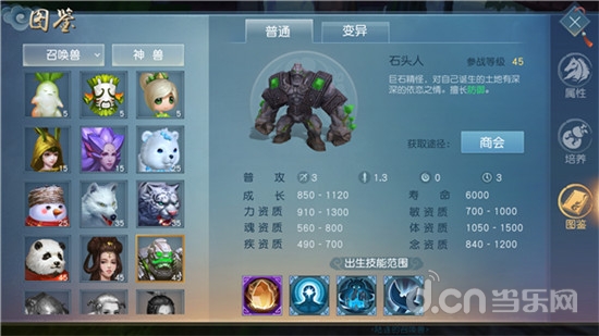 首先玩家需要到商会中的残魂元魂珠那里进行购买,购买之后使用该残魂。残魂打开出来的召唤兽能力较弱,一般情况下都不会使用的,都需要进行洗练。以我购买的石头人残魂为例。