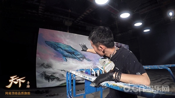 相对于过去的合作,这一次他将携手《天下》手游,将中式涂鸦和国风游戏完美融合,为国内外观众缔造出一个从未见过的“东方幻想式玄幻世界”。从最新曝光的花絮视频和图片可以看到,画图男将在50平米画布上绘制巨幅画作,虽然只有惊鸿一瞥,但是初具雏形的大禹村以及巨鲲还是令人浮想联翩。听说,7月28日这巨鲲将会冲破50平方米的巨幅画幕,遨游珠江之上演绎一场你从未见过的天下,超乎想象一切值得期待。