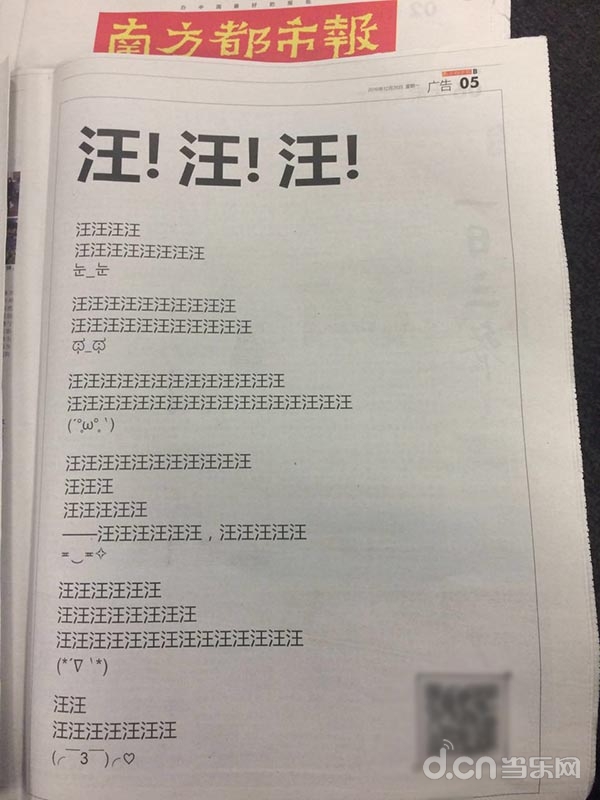 天下少年积极发声,汪星人更是一举”占领“《南方都市报》报纸版面,用独特的汪语言以诙谐幽默的方式讲述悲惨的流浪生活,是借汪星人之口,表达流浪猫狗在城市中的孤苦无依,呼吁天下少年加入到“少年暖天下”的公益活动中,给流浪猫狗一份关爱。呆萌的颜文字、新颖的方式是本次应援大行动一次趣味的缩影。