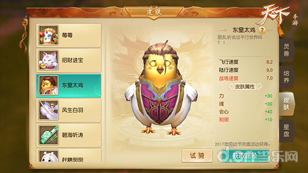 少侠坐在《天下》手游鸡年吉祥物——东皇太鸡背上飞行,定会成为大荒焦点!