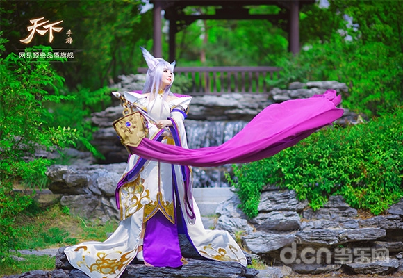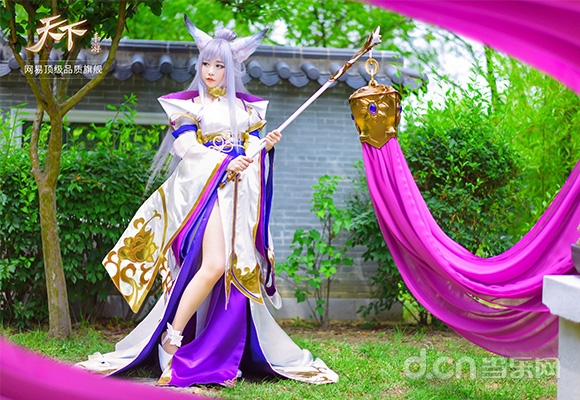 璎珞,伏羲三神器之一乾坤幡拥有者,是天下最杰出的召唤师,狐族少女,婉灵的前世,是个平常不苟言笑的冰美人。璎珞拥有最强大的召唤和创造之力,但她体质只能适合生存在完全没有浊气的地方,高贵冷艳的气质由内而外散发而出。本次由Tomia Cos的璎珞,从外貌到装束细节上都十分贴合璎珞的形象。手持乾坤幡,灵动飘逸、神态坚定,透露出一股冷艳坚毅之美,背后江南风的园林背景,也与游戏中的江南完美贴合。