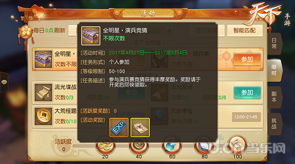 在今天比赛结束后,演兵争霸赛4强势力所在服务器今晚9点至11点将有经验雨奖励哦!