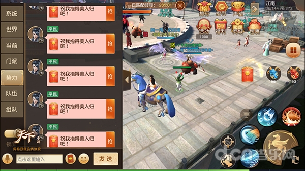 《天下》手游情缘系统正式上线之后,大荒各地迅速涌现出多对情侣。世界频道上的粉红祝福此起彼伏,即使是萍水相逢素未谋面的路人玩家也为这些真挚的情缘送上祝福,在这金秋的浪漫时节,全大荒都沉浸在幸福当中。