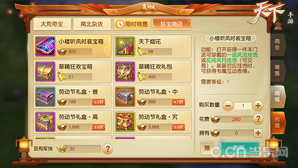 怎么样?是不是超级炫酷!少侠只要前往商城在限时特惠中购买小楼听风时装宝箱,就可以穿戴自己门派对应的挂饰啦!
