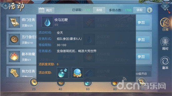 可能大家觉得我打字太多太过于啰嗦,所以这次我就直接直接截图给大家看了,玩家需要达到30级才能够参加,这个活动不需要战斗,就跟名字一样,只需要骑马、加鞭即可。获取的奖励除了活跃度之外,还有物品、金币等奖励。物品的奖励分为洗练道具的九九归一露以及聚能丹,不排除还会获得多余的游戏奖励。