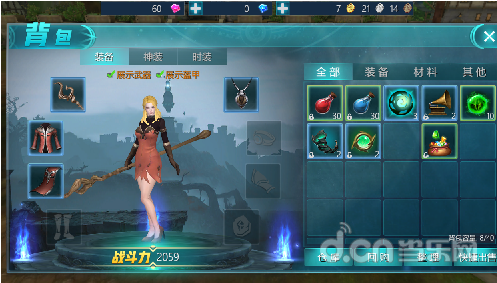 装备部件:装备部件一共有8个部件,分别对应武器、衣服、披风、靴子、项链、戒指、手镯、护符。
