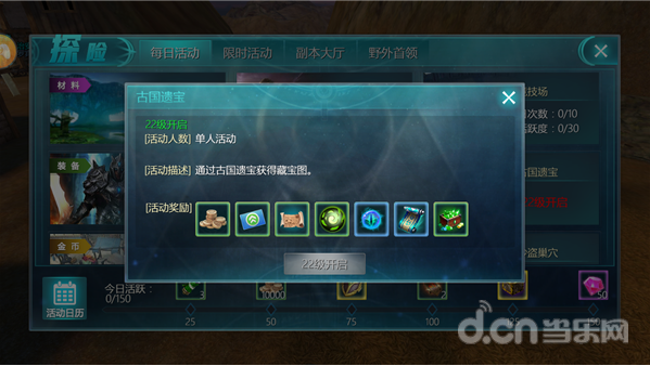 今天介绍下荣耀殿堂中【古国遗宝】的玩法。该玩法在每日活动可找到,22级即可解锁,同时该活动为单人活动,所以即使组队也分不到宝藏的哦!每天可以做5次任务,每次任务有3点活跃度。