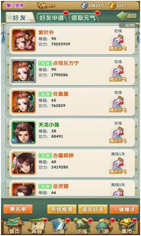 在《大掌门2》的好友系统中,还有一些非常人性化的功能。