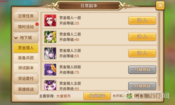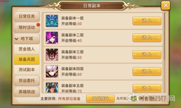 任务入口:主界面->活动->日常副本