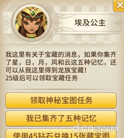 在《魔灵契约》里,等级达到25级之后,玩家就可以与埃及公主对话,开启宝藏任务。