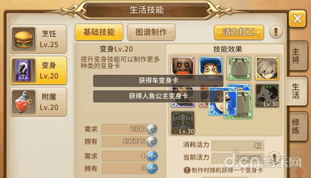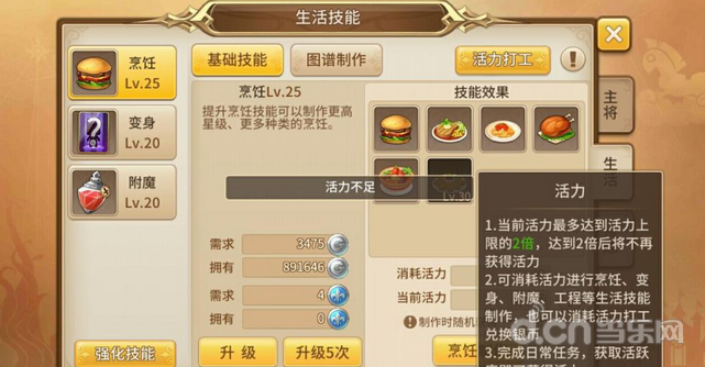 制作食物与变身卡都需要消耗活力。活力可通过完成日常任务,获取活跃度获得。