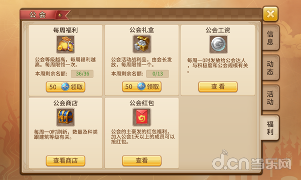 加入公会后可获取公会福利哦!如使用公会贡献在公会商店购买超值商品、每周领取公会工资、获取公会礼盒、抢红包以及领取每周福利。