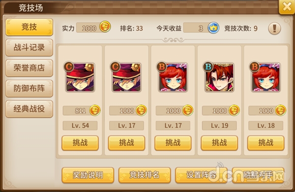 1:实力:与强大的对手进行战斗,能获得更多的实力,实力越高即竞技场排名越靠前。