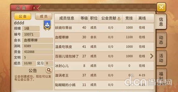 在公会里你会和小伙伴们一起打打公会强盗,参加每周的公会活动,比如公会大乱斗,公会领地战,公会争霸等等其中一些活动成功后还会获得专属称号哦,让你和小伙伴们在人群中鹤立鸡群!