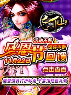 说不尽的感恩,道不完的感谢,在这温情四溢的感恩节来临之际,《忘仙》特为一路上默默支持我们的修仙达人准备了精彩缤纷的感恩节系列活动。幸福《忘仙》,感恩为您!11月22日起,整个《忘仙》三界福地,齐迎感恩节,倾情大献礼,回馈众仙班。让您在冬日里尽享《忘仙》的热情,誓为修仙血拼到底!