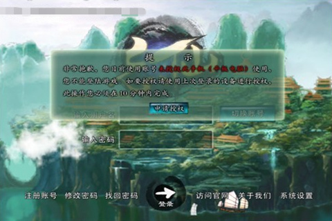 如果一定要与他人共享一个账号,可以进行授权!在玩家使用非绑定主设备或者是非授权设备登陆游戏遭到系统的拒绝的时候,可以通过系统弹出的向主设备申请授权的提示,点击“申请授权”向主设备申请授权。得到主设备授权方可登陆!未经过您授权的设备登陆您的账号,是不可能成功登录的,如果对方想要与您共享账号,则必须要向您申请授权。