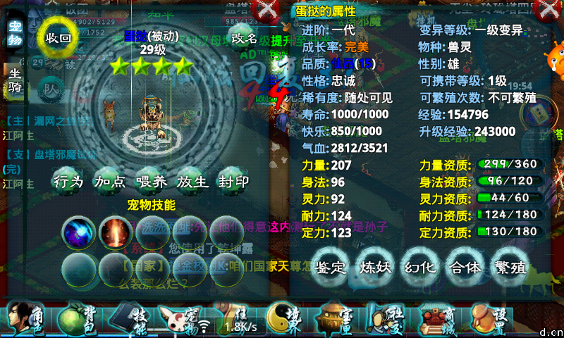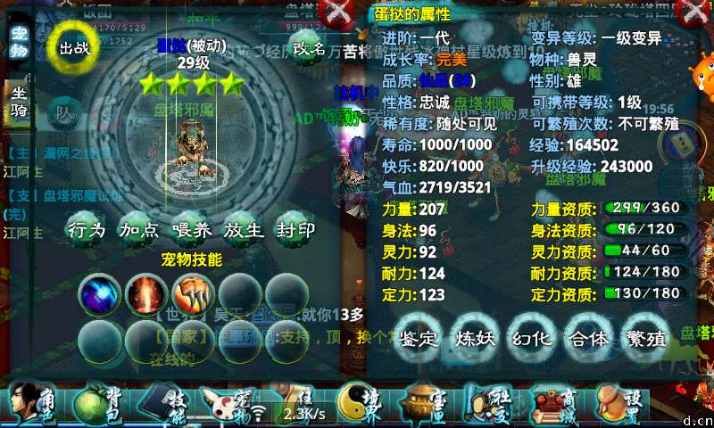 最后,我想说,有木有人知道宠物的星级变化之后,哪些属性会跟着变化?是所有属性都变,还是随机的部分属性变化。总体来说,忘仙的宠物系统很强大,但是解释太少,我想了解的是宠物的属性变化,以及任何能改变宠物属性的操作,但是我看到的却很少。