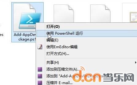 打开选择文件,发现里面一个名为“Add-AppDevPackage.ps1”的文件,这个就是安装文件了,我们右键选择“使用PowerShell运行”进行安装。