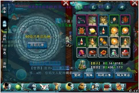 元神系统:玩家到达60级后,就可以开启元神系统。点击角色信息,即可查看自己的元神。元神系统分为本尊和元神,本尊即自己第一次进游戏所创建的角色;元神为激活元神系统后一个新的角色,元神开启第二职业只能为同性别职业,两者间可随时切换。由于本人还未达到60级,所以元神系统就等大家进游戏自己体验吧~