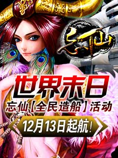 世界末日即将来临,还在为买不起船票而着急吗?还在为去不了卓明谷而焦虑吗?2012年12月13日,《忘仙》末日自救活动——【末日备战,全民造船】火热上线!收集材料,建造方舟,末日逃亡,要靠自己!
